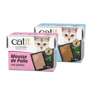 12x90g Catit Cuisine Mousse Tonijn met Zalm & kip met ham nat kattenvoer