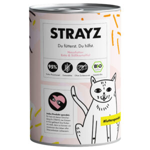 24x 400g STRAYZ Bio Kan Biologische Eend & Biologische Zoete Aardappel Kattenvoer Nat
