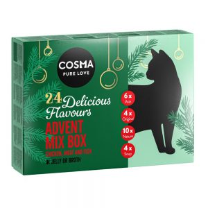 Cosma Asia gemaakt met veel sappig vlees of delicate vis, exotisch licht geraffineerd met een beetje rijst, in smakelijke gelei. Elke variant bevat twee of meer dierlijke eiwitbronnen in de vorm van hoogwaardige stukjes vlees of vis. Door de voorzichtige bereiding van de geselecteerde ingrediënten blijven alle belangrijke voedingsstoffen en de onvervalste, natuurlijke smaak van het voer behouden. Het aanvullende voer van natuurlijke en hoogwaardige ingrediënten is vrij van smaakstoffen, conserveringsmiddelen en kleurstoffen en zorgt zo voor een onmiskenbare smaakbeleving en een op de soort afgestemde voeding. Cosma Asia is verkrijgbaar in de volgende heerlijke varianten: Mix 1 met 5 soorten: 4 blikjes tonijn met krabvlees en elk 2 blikjes kip met tonijn / kip met kippenlever / tonijn met rundvlees / tonijn met zalm. Mix 2 met 5 soorten: 4 blikjes Kip met Krab en 2 blikjes elk van Kip met Tonijn / Tonijn met Brasem / Kip met Reuzenbaars (Barramundi) / Kip met Garnalen Tonijn met Krabvlees: lichte tonijnstukjes met licht verteerbaar krabvlees Kip met Kippenlever: sappige kippenstukjes met gezonde kippenlever Kip met Tonijn: sappige kip met lichte tonijnstukjes Tonijn met Zalm: heerlijke tonijn met de fijnste zalm Tonijn met Rundvlees: geselecteerde tonijn met heerlijk rundvlees Tonijn met Brasem: lichte tonijnstukjes met malse brasem Kip met Reuzenbaars: sappige kip en reuzenbaars Kip Garnalen: sappige kip met lekkere garnalen Cosma Asia 400g in één oogopslag: Premium natvoer voor katten Gemaakt met veel vers vlees of vis Multi-eiwit: minstens 2 hoogwaardige dierlijke eiwitbronnen Voor een op de soort afgestemde voeding Exotisch licht, verfijnd met een beetje rijst Vrij van smaakstoffen, conserveringsmiddelen en kleurstoffen Verwen je kat met veel liefde en Cosma! Voor meer informatie over de producten van Cosma: klik hier