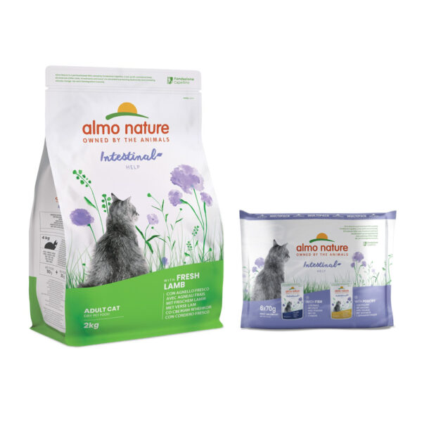 2 kg Almo Nature Intestinal Help + 6 x 70 g bijpassend natvoer voor een speciale prijs!