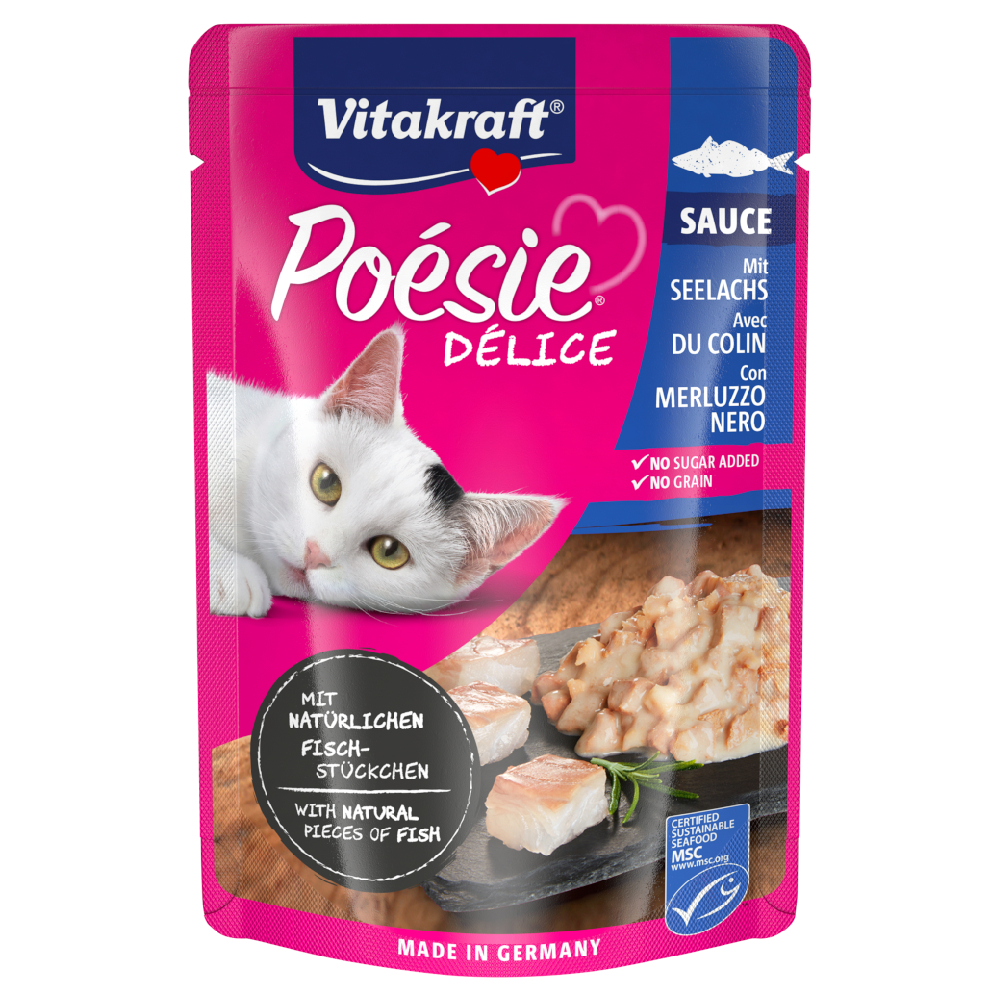 Vitakraft Poésie Délice 23 x 85 g biedt je kat een volledig natvoer dat speciaal is afgestemd op zijn behoeften. De stukken vlees van hoge kwaliteit, die afhankelijk van de soort afkomstig zijn van vis, rund of gevogelte, worden geserveerd in een heerlijke saus die de natuurlijke smaak benadrukt. Het natvoer bevat geen toegevoegde suikers en is graanvrij, waardoor het licht verteerbaar is. Het kattenmeel is ook handig voorgedoseerd in een vershoudzakje, wat het dagelijks voeren vergemakkelijkt en een optimale versheid garandeert. Vitakraft Poésie Délice 23 x 85 g in één oogopslag: Volwaardig natvoer voor katten Zonder granen: bijzonder goed verteerbaar Geen toegevoegde suiker: natuurlijke smaak Stukken vlees van hoge kwaliteit: in een heerlijke saus, afhankelijk van de soort vis, rundvlees of gevogelte Holistische formule: geschikt voor dagelijkse voeding, met essentiële taurine Zonder toevoeging van kunstmatige kleurstoffen, smaakstoffen en conserveringsmiddelen Hoge kwaliteit: uit Duitsland Praktisch voorgedoseerd: in een verse zak