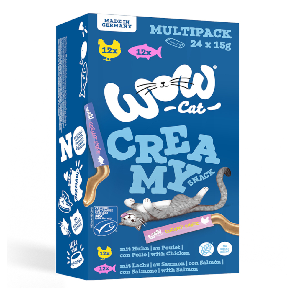 WOW Cat Creamy Snack is de perfecte traktatie voor je tijger. Deze verleidelijke snackcrème wordt geleverd in een multipack met twee heerlijke smaken waar elke kat dol op zal zijn. Jong of oud, deze traktatie is geschikt voor alle leeftijdsgroepen en kan rechtstreeks uit de tube worden gelikt. Met een recept met minder calorieën en zonder toegevoegde granen, suiker of zout, kun je je huisdier trakteren zonder een slecht geweten te hebben. Het hoge vochtgehalte zorgt ook voor extra vochtabsorptie. WOW Cat Creamy Snack is gemaakt in Duitsland en staat voor kwaliteit en smaak. WOW Cat Creamy Snack in één oogopslag: Verleidelijke snackcrème voor katten Multipack met twee smaken: met kip en met zalm Geschikt voor alle kattenleeftijden: ideaal voor jonge en oudere katten Caloriearm recept: ook geschikt voor katten die op hun gewicht moeten letten Zonder graan, suiker en zout: geschikt voor diersoorten en goed verdragen Hoog vochtgehalte: ondersteunt de hydratatie van je fluwelen poot Gemakkelijk toe te dienen: rechtstreeks uit de tube of als topping over het hoofdvoedsel Geproduceerd in Duitsland: Kwaliteit waarop u kunt vertrouwen De multipack bevat de volgende smaken: 12 x 15 g met kip 12 x 15 g met zalm