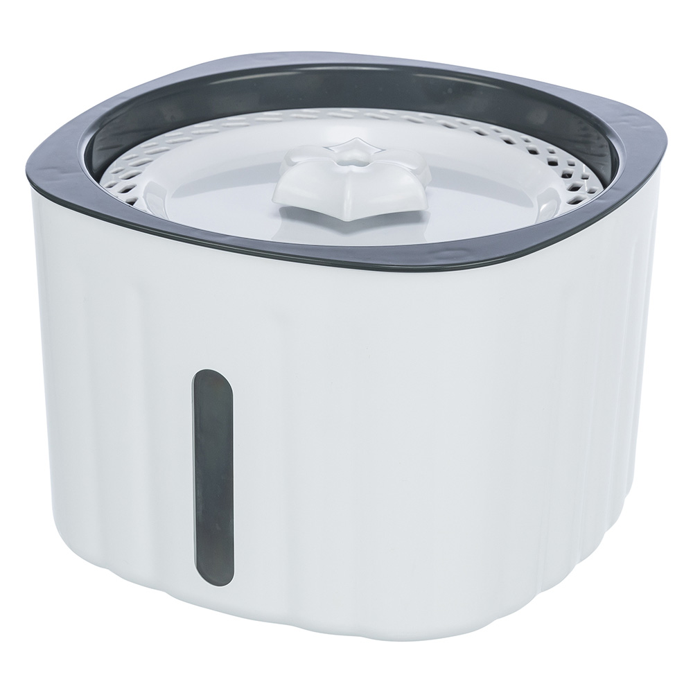 Met zijn stijlvolle en tegelijkertijd minimalistische ontwerp past de Trixie Drinkfontein Flower in iedere woonomgeving. En de fontein is niet alleen mooi, hij overtuigt ook qua functionaliteit: Hij laat het drinkwater van je kat bewegen en continu stromen. Dit spoort aan tot drinken en kan bijdragen aan een regelmatige wateropname. De Trixie Drinkfontein Flower heeft ondanks zijn compacte formaat een volume van 2 liter en is voorzien van een niveau-indicator, waarmee je de inhoud altijd in de gaten kunt houden. Het vervangbare filter bij de fontein zorgt ervoor dat het water langer vers en schoon blijft. Stroomvoorziening kan via een USB-aansluiting of netstekker. Trixie Drinkfontein Flower in één oogopslag: Stijlvolle drinkfontein voor katten Spoort aan tot drinken: stromend water kan aanzetten tot drinken Koelend effect: Watercirculatie zorgt voor zuurstof in het water waardoor het afkoelt Meer zicht op het niveau: met handige niveau-indicator Langdurige waterkwaliteit: filter houdt het water langdurig vers en schoon Minimalistisch ontwerp: past in iedere woonomgeving Met variabele stekkeropties: USB- en netstekker meegeleverd Capaciteit: 2L Afmetingen: L 18,5 x B 18,5 x H 13cm Kabellengte: ca. 1,45m Materiaal: kunststof Kleur: wit, grijs Filter: ja Pomp: Stroomverbruik: 0,072 kWh/dag Vermogen: 3,5 – 8 V Reinigingsadvies: alle onderdelen (behalve de pomp) mogen in de vaatwasser. Leveringsomvang: Trixie Drinkfontein Flower, pomp, USB-kabel, USB-voedingskabel, filter, gebruiksaanwijzing Let op: Het water moet om de twee dagen worden vervangen. Het filter moet een keer per week worden schoongemaakt. Bij meerdere dieren zelfs vaker. Reiniging van de fontein: Was de drinkfontein (niet de pomp) één keer per week in de vaatwasser of met een zachte spons en mild schoonmaakmiddel en spoel af. Spoel zorgvuldig af zodat er geen zeepresten achterblijven. Let er bovendien op dat er voldoende water in de fontein zit. De pomp mag nooit droogvallen. Reinigen van het filter: Neem het filter uit de bodem en spoel het af. Het filter niet met zeep wassen. Vervang het filter als het overmatig verontreinigd is of andere vreemde stoffen bevat. Vervang het filter iedere 2-4 weken of zodra er tekenen van verzadiging met vreemde stoffen (onzuiverheden, voedselresten, haren, etc.) te zien zijn. Regelmatiger vervangen kan noodzakelijk zijn afhankelijk van de woonomgeving of waterkwaliteit, evenals bij gebruik door meerdere dieren. Lees hiervoor de gebruiksaanwijzing. Reinigen van de pomp: Controleer de aandrijfmagneet (propeller, impeller) door deze van de pomp te verwijderen en zorgvuldig met een doek te reinigen. Omdat leidingwater kalk bevat, verkalkt na een aantal maanden niet alleen je koffiezetapparaat, maar ook het filter van aquariums en drinkfonteinen voor katten en honden. Het is daarom goed om meermaals per jaar niet alleen vuil van de aandrijfmagneet te verwijderen, maar deze ook schoon te maken met azijn. De aandrijfmagneet ziet er uit als een propeller of rotor. Zet een schoteltje met azijn klaar. Verdun de azijn met wat leidingwater en dep er een doek in. Met de vochtige doek veeg je de aandrijfmagneet en daarrond voorzichtig schoon. Het is zeer belangrijk dat alle onderdelen na reiniging nog eens zeer grondig met leidingwater worden afgespoeld. Azijn en andere schoonmaakmiddelen zijn namelijk schadelijk voor dieren. Reinig de pomp ten minste om de vier weken. Lees hiervoor de gebruiksaanwijzing.