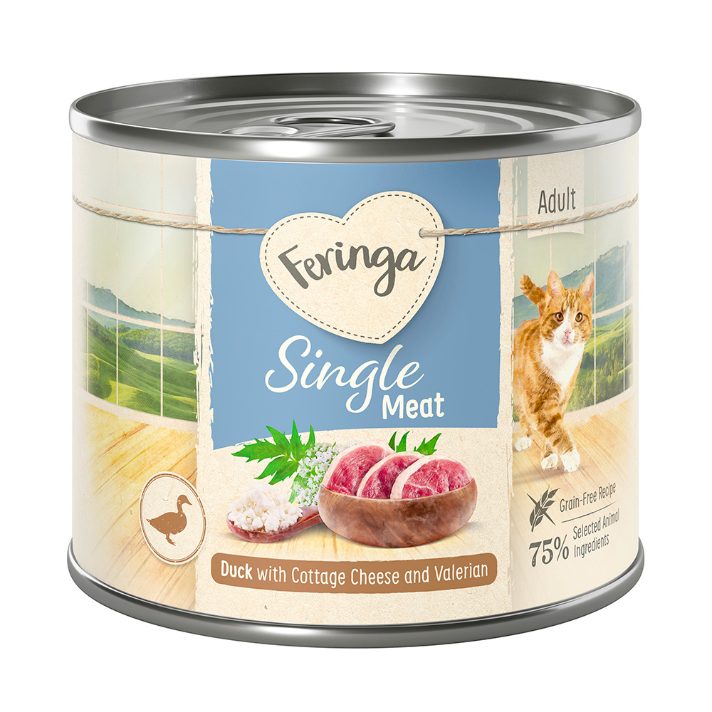 6x200g Single Meat Menu Eend met Cottage cheese & Valeriaan Feringa Kattenvoer