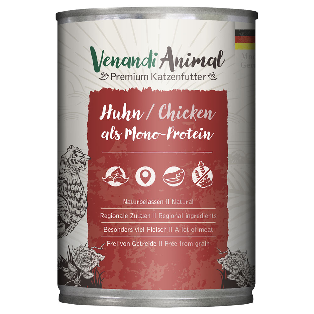 6x400g Venandi Animal Monoprotein Kip kattenvoer nat