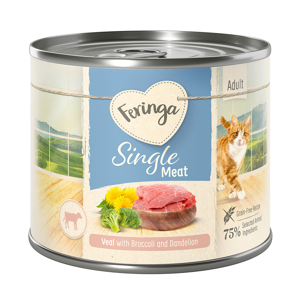 Feringa Single Meat Menu 12 x 200 g Kattenvoer – Kalfsvlees met Broccoli & Paardenbloem