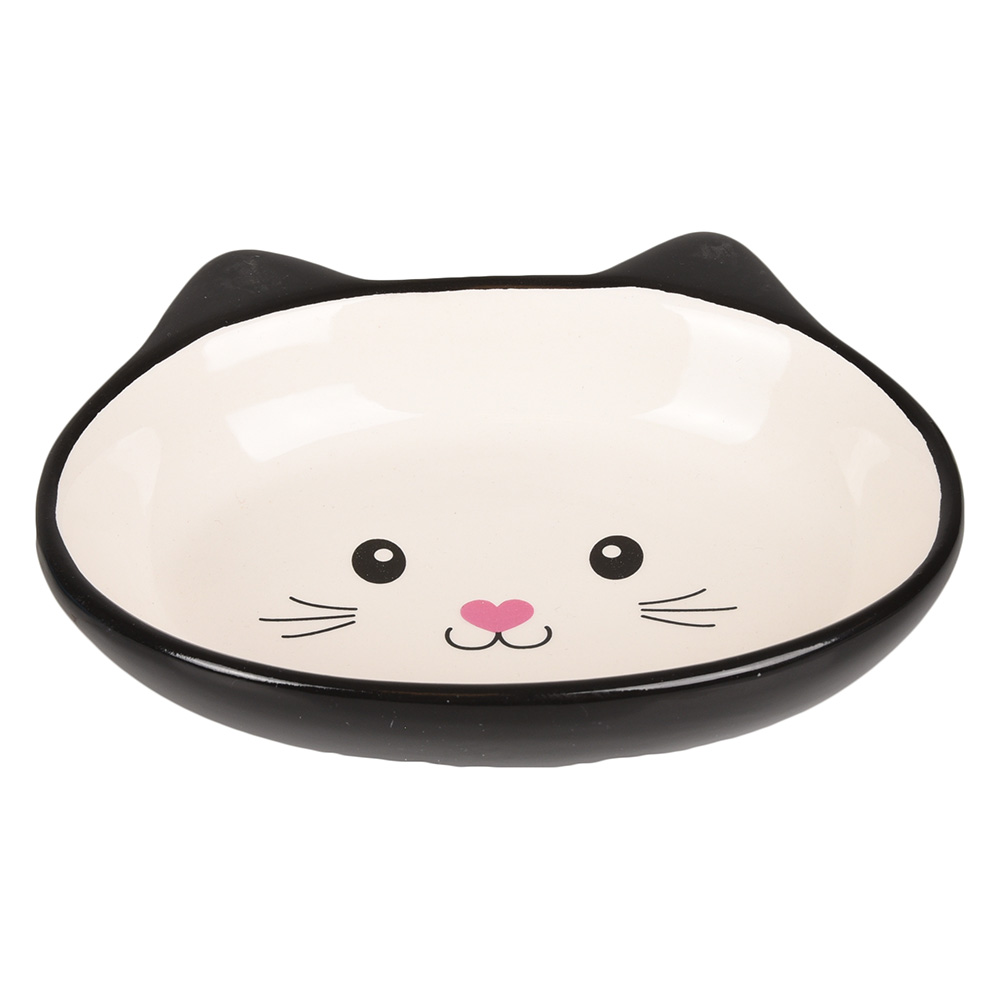 Opgelet voor de fijnproevers, met de keramische voerbak wordt iedere maaltijd een genot. Met zijn uitstekende oortjes en ovale vorm was er niet veel meer nodig dan het gezichtje dat op de bodem van de kom is gedrukt om het schattige kattenkopje compleet te maken. De schattige neus in de vorm van een klein roze hart vormt het enige kleuraccent op de mooie, overigens helemaal zwart-witte schaal. Traditioneel keramiek is bijzonder makkelijk te reinigen en is ideaal voor droogvoer, natvoer en water. Van het gladde oppervlak kun je zelfs gedroogde voerresten makkelijk afwassen. De onderranden van de Flamingo Keramische Kattenvoerbak Isa zijn licht geribbeld om overmatig verschuiven op gladde oppervlakken tegen te gaan. Flamingo Keramische voerbak Kat Isa in één oogopslag: Schattige voerbak voor katten Geschikt voor natvoer, droogvoer en water Ovaal en plat: makkelijker toegang tot het voer, snorharen blijven schoon Van keramiek: voedselveilig en onderhoudsvriendelijk Mooi kattenontwerp: In de vorm van een kattenkop met oren, bedrukt kattengezicht en roze hartneus Opgerichte onderrand: vermindert verschuiven tijdens het eten Materiaal: keramiek Afmetingen: L 14,5 x B 12,5 x H 3,5cm Capaciteit: 170ml Kleur: zwart-wit, roze Onderhoudsinstructies: met de hand wassen met een mild vaatwasmiddel
