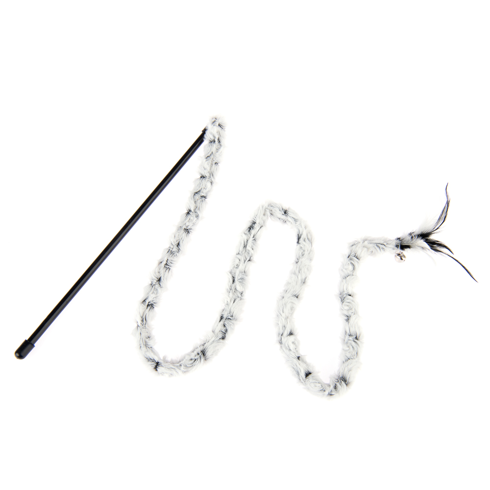 Tijd voor wat speelplezier samen! Met de kattenhengel Plush ben je optimaal uitgerust voor interactieve vang- en jachtspelletjes met je kat. De extra lange pluche staart zorgt voor extra veel bewegingsruimte en helpt onbedoelde krassen door de kattennagels voorkomen. De kattenspeelhengel is voorzien van veren die een prooi-achtig effect hebben en aanzetten tot jagen. Het speelgoed wordt nog interessanter dankzij het belletje dat tijdens het spelen rinkelt. De Kattenhengel Plush bestaat uit een klauwvriendelijk materiaal en is makkelijk vast te houden – perfect om heerlijk op te jagen en te vangen. Kattenhengel Plush in één oogopslag: Grappige speelhengel voor katten Met veren: lijkt op een prooi, wekt het jachtinstinct op, fladdert stimulerend Met belletje: heldere geluiden moedigen je kat aan om te spelen en te vangen Perfect om te jagen krabben: klauwvriendelijk materiaal, goed vast te houden, zacht voor tanden en gehemelte Interactief speelplezier: gezamenlijke spelletjes met kat en baasje versterken de band Extra lange pluche staart: voor meer bewegingsvrijheid, voorkomt onbedoelde krassen van de nagels Kleur: zwart/wit Materiaal: Stok: PP Hanger: polyester / veren / metaal Afmetingen: Totale lengte: ca. L 135 cm Stok: ca. Ø 1 x L 31 cm Pluche staart: ca. L 104 cm Let op: Houd net zoals bij ieder ander product je huisdier in de gaten tijdens het spelen met dit speeltje. Controleer het product regelmatig op schade en vervang het speelgoed als het defect is of onderdelen verloren gaan. Anders kan niet worden uitgesloten dat je huisdier gewond raakt.