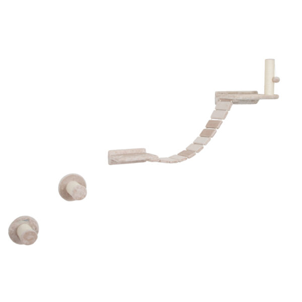 De Kerbl Pet klimwand Matterhorn voor katten in beige is een zesdelige klimwandset die je kat veel afwisseling biedt. Om te klimmen, te spelen of te snoezelen – de verschillende elementen zoals sisalpalen, een hangbrug en een gewatteerde ligplank nodigen uit tot spannende avonturen. Je kunt de wand individueel indelen en perfect aanpassen aan de ruimte in je huis. Extra handig: De klimwand kan aan de muur worden bevestigd om ruimte te besparen en is daarom ook ideaal voor kleinere ruimtes. De combinatie van massief hout, pluche en sisal zorgt voor stabiliteit en comfort in gelijke mate. De meegeleverde montage-instructies en de juiste montagematerialen maken de montage kinderspel. Kerbl Pet klimwand Matterhorn voor katten, beige in één oogopslag: Zesdelige klimwandset voor katten Bestaande uit: 2 sisalpalen Stapplank Hangbrug gewatteerde ligplank Sisalpaal met pluche speelgoedbal Individueel monteerbaar: kan flexibel worden aangepast aan de omstandigheden in je kamer Speelcombinatie rust: met voetplank, hangbrug, ligvlak en sisalpalen Ruimtebesparend: ideaal voor kleine appartementen of bij weinig vrije vloerruimte Robuuste materialen: gemaakt van massief hout, pluche en sisal voor stabiliteit en comfort Montagemateriaal meegeleverd Kleur: beige Afmetingen: 2 sisalpalen: Ø 9,5 x 25 cm elk Treeplank: L 29,5 x B 22,5 cm Hangbrug: L 85 x B 20 cm Gewatteerde ligplank: L 40,5 x B 31 cm Sisalpaal: Ø 8 x L 29 cm met pluche speelbal Let op: Alleen geschikt voor binnen.