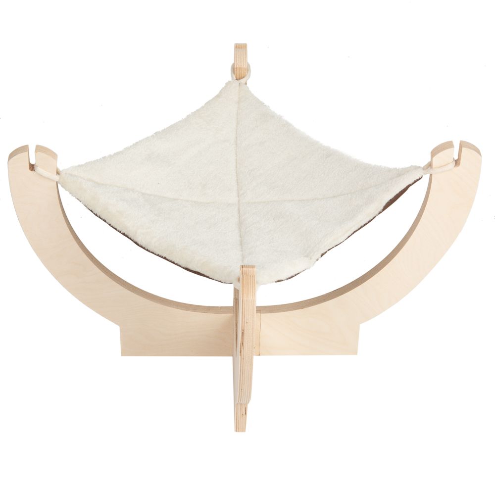 Het natuurlijke paradijs is het beste bewijs van het respect van je eigenaar voor wat en wie je bent: veel meer dan een huisdier. Je bent een geliefd familielid en je verdient een comfortabele en liefdevolle omgeving om je thuis te voelen. Dat is waar we ons best voor doen. We zorgen er graag voor dat het huis van je eigenaar je natuurlijke habitat wordt. Zo kun je altijd jezelf zijn en je natuurlijke instincten volgen. NATURAL PARADISE. DESIGNED FOR NATURAL INSTINCTS. Oh, hoe chic! Dit ziet eruit als de perfecte plek om te chillen voor relaxte katten zoals jij. Een hangmat om te relaxen, te snoozen en te ontspannen – dat klinkt goed! Veel koeler dan normale kattenbedden, toch. Het frame van echt hout is volledig stabiel, dus er is geen gevaar voor vallen. En jouw tweebenige vrienden kunnen het knusse kussen zelfs voor jou omdraaien. De ene kant is knus en warm en perfect voor koude dagen, de andere kant is glad. Geweldig, je kunt het je hier zomer en winter comfortabel maken. Misschien kun je zelfs even chillen op het balkon of terras. Water en vuil kunnen de stof niet beschadigen, dus dat zou geen enkel probleem zijn! Je hoeft overigens niet lang te wachten voordat je het jezelf comfortabel kunt maken in de hangmat, want hij is heel eenvoudig in elkaar te zetten. Natural Paradise Hangmat Iris in één oogopslag: Moderne hangmat voor katten en kleine honden Ideaal voor binnen en overdekte buitenruimtes Groot ligoppervlak: ideaal voor grote kattenrassen Stabiel houten onderstel: gemaakt van onbehandelde, echte houten platen, uit duurzaam bosbeheer, lastig te verschuiven Insteeksysteem: eenvoudige montage zonder schroeven Tweezijdig bed: knuffelig, warme kant voor de winter, gladde nylon-kant voor de warmere jaargetijden, water- en vuilafstotend weefsel, eenvoudig met lussen aan de hoeken ophangen Gewatteerde, gevoerde hangmat: eenvoudige, hygiënische reiniging Ruimtebesparend: plat op te vouwen, eenvoudig te transporteren en op te bergen Made in Georgia Kleur: crème / bruin Materiaal: Onderstel: hout Hangmat: 65% polyester, 35% PVC Afmetingen: Maat M: Totale afmetingen: L 44 x B 44 x H 34,2 cm Ligoppervlak: L 35 x B 35 cm Instaphoogte: ca. 26 cm Ingeklapt: L 49 x B 25 x H 8 cm Maat L: Totale afmetingen: L 79,7 x B 41 x H 34,2 cm Ligoppervlak: L 65 x B 38 cm Instaphoogte: ca. 24 cm Ingeklapt: L 49 x B 25 x H 9 cm Onderhoud: Hangmat is met de hand en wasmachine te wassen op 30°C Let op: alleen voor gebruik binnenshuis.