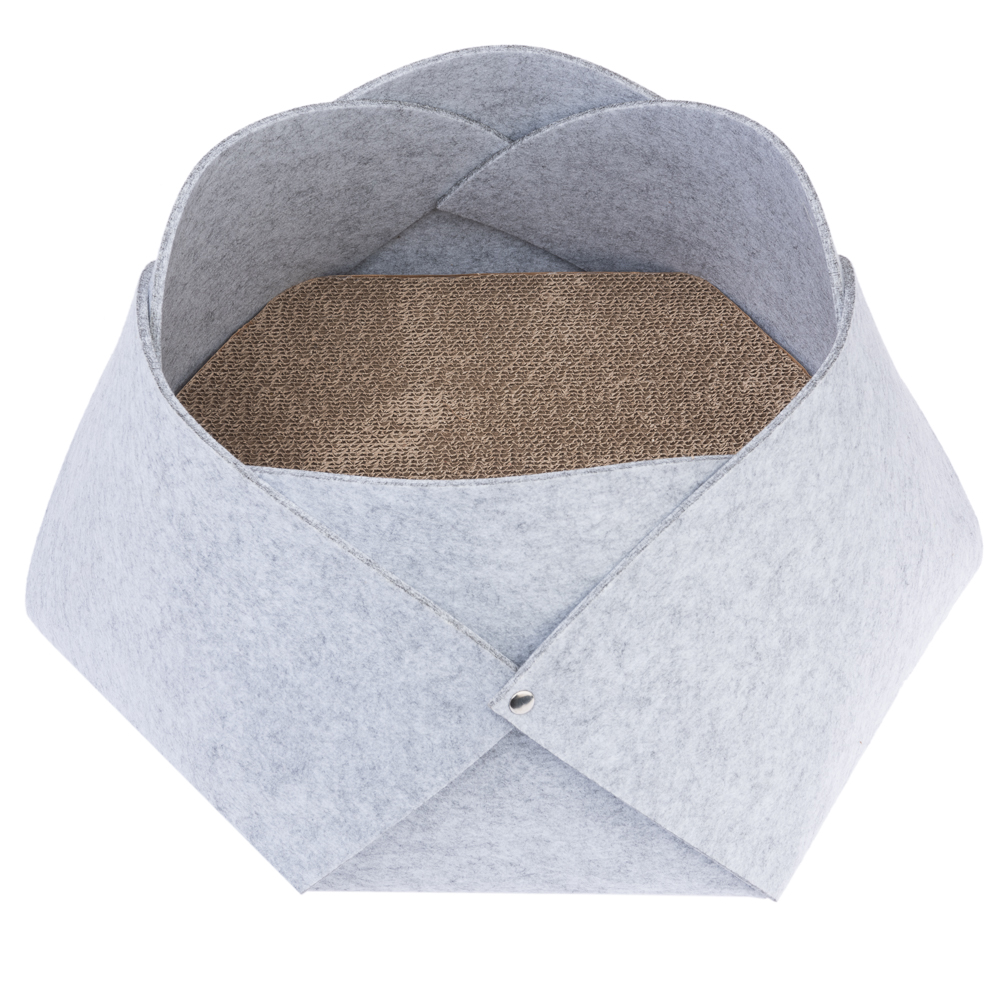 Het Modern Living Krabmeubel Wujin is de perfecte keuze voor alle kattenbaasjes die hun katten een stijlvol en tegelijkertijd praktisch krabmeubel willen geven. Het mooie krabhol van grijs vilt past met de halfgesloten bloemvorm zonder problemen in ieder interieur en biedt je kat een knusse schuilplek. Het verwisselbare krabboard is perfect voor de dagelijkse nagelverzorging en kan helpen te voorkomen dat baldadige katten je meubels beschadigen. Dankzij de drukknoppen is het in elkaar zetten heel eenvoudig en snel. Het Modern Living Krabmeubel Wujin wordt bovendien geleverd met een pakketje kattenmunt dat de acceptatie van het nieuwe meubelstuk makkelijker kan maken. Met de Wujin geef je jouw huisdier een hoogwaardig krabholletje dat zowel functioneel is als aantrekkelijk qua looks. Modern Living Krabmeubel Wujin in één oogopslag: Elegant krabholletje voor katten Met verwisselbaar krabboard: 6-hoekig, met veel kraboppervlak, kan worden vervangen door een kussen om er een mandje van te maken (niet meegeleverd) In bloemvorm: beschermend ligvlak van alle kanten, verhoogt het gevoel van veiligheid Incl. kattenmunt: kan de acceptatie door de kat makkelijker maken Van vilt: onderhoudsvriendelijk, houdt de warmte in het holletje Mooi ontwerp: in klassiek grijs, past in ieder modern interieur Eenvoudige montage: dankzij drukknoppen, stevig vormvast Kleur: grijs Materiaal: Holletje: vilt Drukknoppen: metaal Krabboard: golfkarton Totale formaat: ca. L 50 x B 50 x H 26 cm Krabboard: L 44 x B 44 x H 6,5 cm Ligoppervlak: ca. L 46 x B 46 cm Instaphoogte: ca. 26 cm Inloopopening: ca. Ø 35 cm Materiaaldikte: ca. 5 cm Let op: Alleen geschikt voor binnen. _____________________________________________________________________________ Huisdieren maken ons leven gelukkiger, onze dagen helderder en onze huizen gezelliger. Met ze knuffelen en ze warmte en troost geven, vervult ons met vreugde. Ze horen miauwen van plezier of piepen van opwinding maakt van onze kleine wereld een betere plek. Modern Living wil jou en je huisdier veel onvergetelijke momenten bezorgen. Met producten van hoge kwaliteit die passen bij jouw levensstijl. Of het nu minimalistisch, modern of in boho-stijl is – met Modern Living creëer je een harmonieuze en stijlvolle leefruimte voor jou en je huisdier. Eén die je huisdier net zo aanspreekt als jij en die een eigen ruimte creëert waar hij kan spelen, slapen en zich prettig voelen. Een ruimte waar je huisdier zich thuis kan voelen.