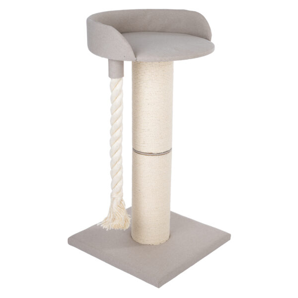 De Modern Living Mumbai Jumbo XL krabpaal is ideaal voor grote kattenrassen. Met zijn dikke krabpaal en royale kraboppervlak biedt hij je kat veel ruimte om te krabben en te klimmen. Boven is er een groot, gewatteerd bed met een comfortabele rugleuning die je fluwelen poot een knusse plek biedt om uit te rusten en over de kamer te waken. Een bijzonder hoogtepunt is het bungelende sisaltouw, dat kinderen uitnodigt om te spelen en te klimmen. De grote bodemplaat zorgt voor stabiliteit en veiligheid, zodat je kleintje zorgeloos kan ravotten en ontspannen. De Modern Living Mumbai Jumbo XL krabpaal is een perfecte mix van functionaliteit en comfort waar zowel je tijger als je huis van profiteren. Modern Living Mumbai Jumbo XL krabpaal in één oogopslag: Ruime krabpaal voor grote kattenrassen Uit de Modern Living Minimalist-collectie Dikke krabpaal: biedt veel kraboppervlak voor het scherpen van klauwen Ligbed met rugleuning: bekleed met zachte bekledingsstof voor maximaal comfort Met bungelend sisaltouw: perfect om mee te spelen en op te klimmen Grote bodemplaat: biedt extra stabiliteit en veiligheid Kleur: beige Totale afmetingen: L 60 x B 60 x H 114 cm Bodemplaat: L 60 x B 60 x H 3 cm Ligbed: Totaal: Ø 58 x H 15 cm Ligvlak: Ø 55 cm Sisaltouw: Ø 5 x L 80 cm Twee sisalstammen: Ø 19 x L 48 cm Let op: Alleen geschikt voor binnen. _____________________________________________________________________________ Huisdieren maken ons leven gelukkiger, onze dagen lichter en ons huis gezelliger. Met je huisdier knuffelen en hem/haar warmte en troost bieden, vervult ons met vreugde. Je lieve kat horen miauwen van vreugde of piepen van opwinding maakt onze kleine wereld een betere plek. Modern Living wil jou en je huisdier veel onvergetelijke momenten bezorgen. Met hoogwaardige producten die passen bij jouw levensstijl. Minimalistische, moderne of boho-stijl – Met Modern Living kun je een harmonieuze en stijlvolle leefruimte creëren voor jou en je huisdier. Een die jouw huisdier net zo aanspreekt als jijzelf en een eigen ruimte creëert waarin hij kan spelen, slapen en zich op zijn gemak voelt. Een plek waar je huisdier zich helemaal thuis kan voelen.