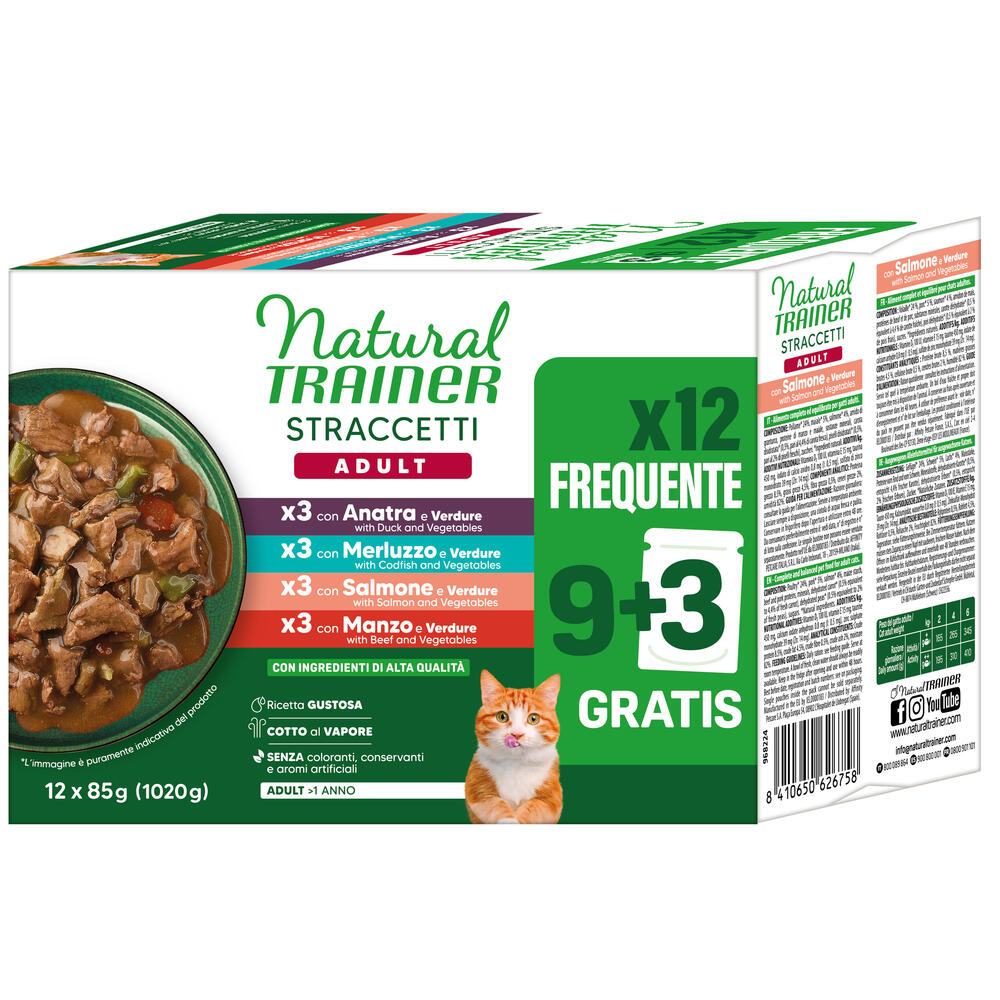 Ontdek het hoogwaardige kattenvoer Natural Trainer Strips in Sauce, een heerlijke maaltijd voor fijnproevers op vier poten. De sappige reepjes worden geleverd in een verleidelijke saus die zelfs de meest veeleisende huiskatten zal doen spinnen. De bereiding wordt voorzichtig uitgevoerd in zijn eigen sap, waardoor alle waardevolle aroma’s en voedingsstoffen behouden blijven. Dit smakelijke kattenvoer is compleet en uitgebalanceerd. Natural Trainer Strips in Sauce bevat uitsluitend natuurlijke ingrediënten en maakt geen gebruik van kunstmatige toevoegingen zoals kleur- en smaakstoffen of conserveringsmiddelen. Door de verschillende soorten in het mixpakket kan je kleine lieveling verschillende smaken uitproberen. Natural Trainer Reepjes in saus 12 x 85 g in één oogopslag: Smaakvol smeuïg voer voor katten Delicate stukjes in saus: verrukt zelfs de meest kieskeurige fluwelen pootjes Gekookt in eigen sap: optimaal behoud van de natuurlijke smaak en voedingsstoffen Evenwichtig en compleet: kan dagelijks als hoofdvoedsel worden gegeven Natuurlijke ingrediënten: zonder kunstmatige kleur-, smaak- of conserveringsmiddelen Vier smaken in de mix: perfect om te proberen