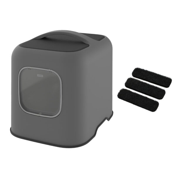 Rotho MyPet kattenbak BIALA – Voordeelset: Kattenbak antraciet + 3 x actieve koolstoffilters