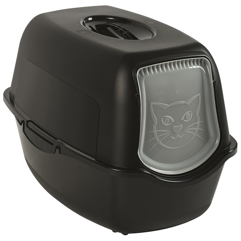 Houdt je kat van privacy en doet ze liever haar behoefte in een gesloten, beschermde ruimte. Dan maak je met de Rotho MyPet Kattenbak Eco BAILEY de juiste keuze. Dankzij de klapdeur met een schattig kattenpatroon is de kattenbak met kap makkelijk bereikbaar en valt er bovendien genoeg licht naar binnen. Hij beschikt over een verhoogde onderbak die voorkomt dat er urine, ontlasting of kattenbakvulling overheen gaat of doorlekt, waardoor de omgeving van het toilet wordt beschermd tegen overmatige vervuiling. Het actief koolfilter aan de bovenkant van het toilet helpt effectief om nare geurtjes te verminderen. Ook het schoonmaken van de Rotho MyPet Kattenbak Eco BAILEY is eenvoudig: dankzij de klemmen aan de zijkant is het deksel makkelijk los te maken van de onderbak. Met het geïntegreerde handvat kun je hem vervolgens terugzetten op de oorspronkelijke plek. De kattenbak met kap is geheel gemaakt van gerecycled, BPA-vrij kunststof. Rotho MyPet Kattenbak Eco BAILEY in één oogopslag: Mooie kattenbak met kap Rustige plek: perfect voor katten die graag beschermd afgeschermd hun behoefte doen Geurbestrijding: met actief koolfilter tegen slechte geurtjes Van gerecycled kunststof: 100% BPA-vrij, onschadelijk milieuvriendelijk Klapdeur met kattenmotief: eenvoudig te openen, lichtdoorlatend, schattig ontwerp Makkelijk bereikbaar: onderbak en kap verbonden met kliksluitingen, maakt snelle reiniging en verplaatsen van het toilet in zijn geheel mogelijk Met handvat: maakt het makkelijker om het toilet te verplaatsen en vervoeren, voor betere toegang Soort toilet: kattenbak met kap Afmetingen: Totale afmetingen: L 56 x B 39 x H 40 cm Binnenmaten: L 46 x B 34,5 x H 35,5 cm Ingang: B 19 x H 24 cm Hoogte onderbak: 18,5 cm Instaphoogte: 14,5 cm Klapdeur: ja Filter: ja (actieve kool) Handvat: ja Kleur: zwart