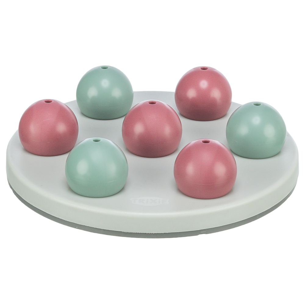 Met het Trixie Cat Activity Strategy Game Solitaire breng je wat extra uitdaging in het dagelijks leven van je kat. Het spelbord met zeven dekselkogels nodigt uit tot puzzelen: onder de ballen kun je lekkernijen of vloeibare snacks verstoppen, die je fluwelen pootje moet ontdekken door de ballen behendig op te tillen. Dit stimuleert het natuurlijke speelinstinct van je huisdier op een speelse manier. Het Trixie Cat Activity Strategy Game Solitaire is gemaakt van stevig kunststof en blijft goed op z’n plek dankzij een rubberen ring aan de onderkant – zelfs bij enthousiaste pootjes. Er worden trainingsinstructies meegeleverd om jou en je kat op weg te helpen met het spel. Bovendien is het spel getest door een onafhankelijk gespecialiseerd centrum en voldoet het aan de eisen voor diervriendelijk werken volgens Sectie 18 (AT). Trixie Cat Activity Strategy Game Solitaire in één oogopslag: Strategiespel voor katten, stimuleert het speelinstinct en mentale activiteit Spelbord met 7 dekselkogels: traktaties kunnen onder de ballen worden verstopt Antislip ontwerp: rubberen ring zorgt voor stabiliteit tijdens het spelen Inclusief trainingsinstructies: helpt jou en je kat om samen aan de slag te gaan Kleur: salie / oudroze / grijs Materiaal: kunststof Afmetingen: Ø 15 cm Let op: Alleen voor gebruik door huisdieren. Niet geschikt voor kinderen! Laat huisdieren nooit zonder toezicht alleen met het speelgoed. Geen enkel speelgoed is onverslijtbaar. Laat je huisdier geen speelgoed meer gebruiken dat beschadigd of kapot is of waarvan onderdelen ontbreken. Raadpleeg onmiddellijk een dierenarts als er per ongeluk kleine onderdelen worden ingeslikt. Uit de buurt van hittebronnen en open vlammen houden. Gooi het product en de verpakkingsmaterialen weg volgens de lokale normen en voorschriften. Alle ingrediënten zijn afkomstig van leveranciers die voldoen aan de EU-regels voor ontbossingsvrije producten (EUDR).