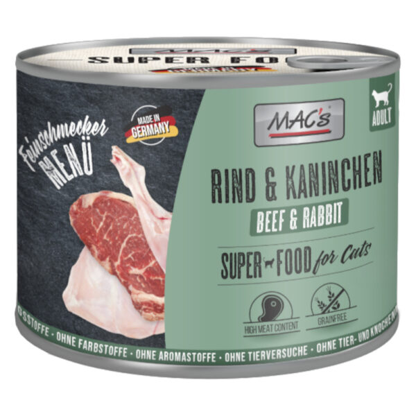 MAC’s Cat Fijnproever is een bijzonder verfijnd natvoer dat wordt gekenmerkt door een extreem hoog vleesaandeel van 71%. Aangezien de natuurlijke voeding van katten uitsluitend is gebaseerd op vlees, is een hoog aandeel voedzame, dierlijke eiwitten van bijzonder belang voor deze dieren. Voer op basis van granen daarentegen veroorzaakt vaak onaangename allergieën en intoleranties die de levenskwaliteit van de dieren aanzienlijk kunnen beïnvloeden. Daarom bevatten de maaltijden van MAC’s geen granen. In plaats daarvan worden alleen de beste vleessoorten en de meest hoogwaardige vis verwerkt, die uitsluitend afkomstig zijn uit Duitse productie. Het gebruik van gemodificeerd vlees of dier- en beendermeel wordt vermeden. De toevoeging van essentieel taurine kan een gezonde hartfunctie en een sterk gezichtsvermogen ondersteunen. Aminozuren zijn onmisbaar voor katten, maar kunnen niet in voldoende hoeveelheden door hun lichaam worden aangemaakt en moeten daarom via het voer worden opgenomen. Dankzij de zorgvuldige bereiding zonder kunstmatige kleur-, aroma- en conserveermiddelen zijn de maaltijden bijzonder goed verteerbaar. Andere belangrijke vitaminen en mineralen bieden een evenwichtig voedingsprofiel. De maaltijden worden geproduceerd in Duitsland. MAC’s Cat Fijnproever overtuigt: Hoogwaardig natvoer voor alle katten Ideaal voor voedingsgevoelige dieren Geproduceerd in Duitsland Minstens 71% vleesaandeel: voor een op de natuur gebaseerde voeding met de beste smaak Dierlijk eiwit van de beste kwaliteit: Uitsluitend afkomstig uit Duitse productie Vrij van dier- en beendermeel en gemodificeerd vlees Zonder granen, soja, kunstmatige kleur-, aroma- en conserveermiddelen Met taurine: ter versterking van de hartfunctie en het gezichtsvermogen Met belangrijke vitaminen en mineralen: voor een holistische, evenwichtige voeding Zorgvuldig bereid Profiteer nu van onze voordelige spaarpakketten: Grijp je kans! Bij de aankoop van 24 x 200g MAC’s Cat Fijnproever kattenvoer van jouw keuze spaar je nu langdurig!