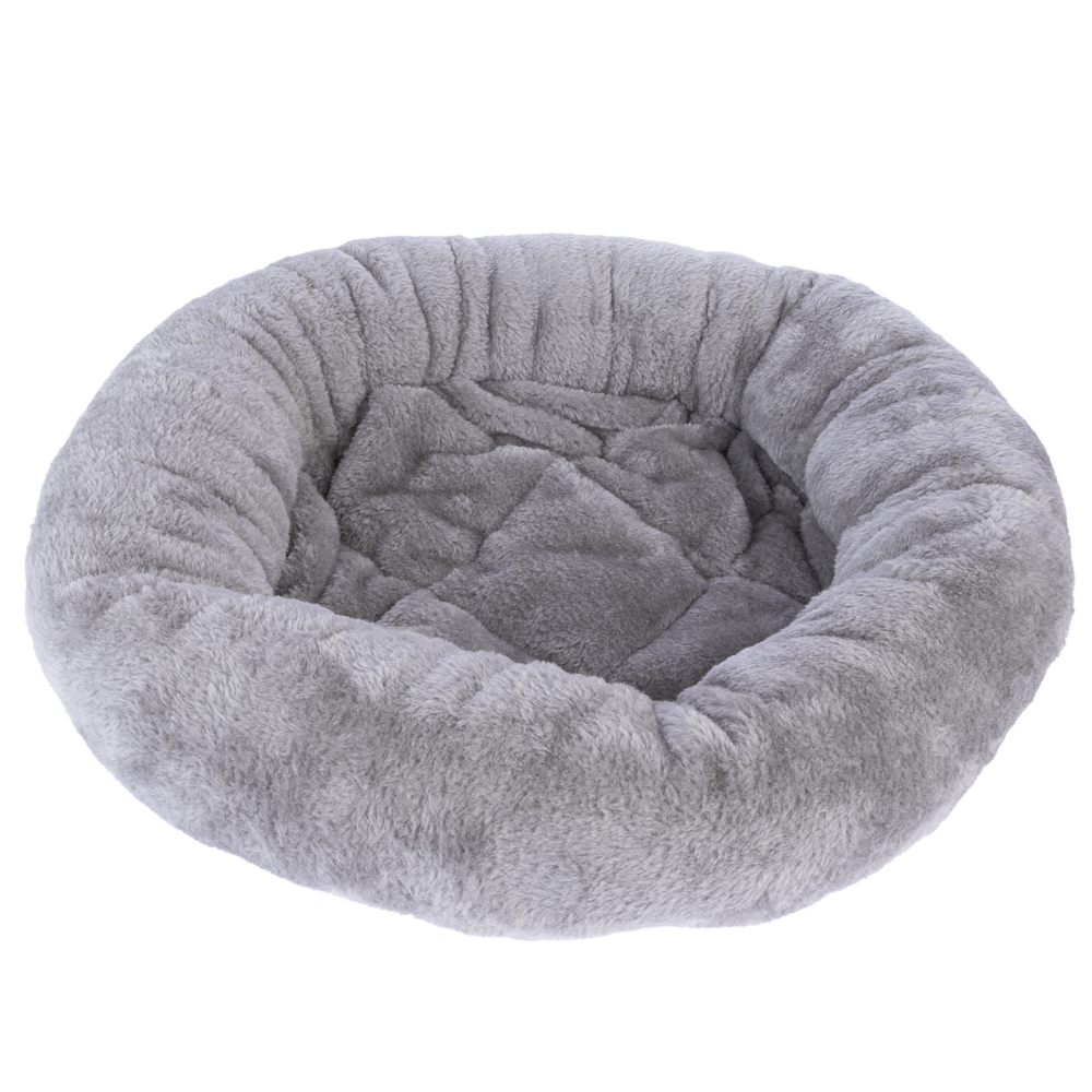 Het zooplus Basics kattenbed biedt uw kat een luxe plek om te rusten en te ontspannen. De dikke, gewatteerde rand is ideaal om je kat een veilig en geborgen gevoel te geven terwijl hij zich knuffelt of zijn kop neerlegt. De zachte, aaibare pluche hoes zorgt voor een aangenaam gevoel op de vacht van je huisdier. Dankzij het wasbare materiaal kun je het bed gemakkelijk schoonhouden, terwijl de antislip onderkant voorkomt dat het uitglijdt op gladde vloeren. Het moderne grijze ontwerp past in elk huis en biedt een stijlvolle rustplaats voor je fluwelen poot. zooplus Basics kattenbed in één oogopslag: Knus knuffelbed voor katten Met hoge rand: om op te krullen en het hoofd te laten rusten Zacht knuffelpluche: zacht, comfortabel en knuffelbaar Wasbaar materiaal: gemakkelijk schoon te houden Antislip onderkant: voorkomt uitglijden op gladde vloeren Kleur: grijs Materiaal: Hoes: 100% polyester Vulling: PP vulling Onderlaag: 100% niet-geweven stof (polyester) Afmetingen: Totaal: Ø 47 x H 11 cm Ligvlak: Ø 33 cm Instaphoogte: 11 cm Onderhoudsinstructies: handwasbaar op 30°C